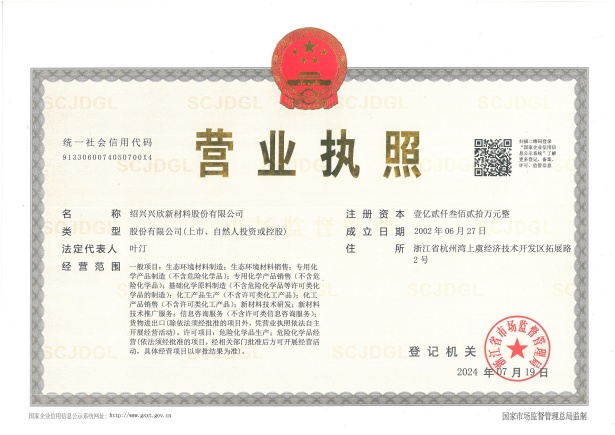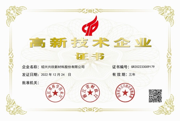 紹興興欣新材料股份有限公司成立于2002年06月27日,占地面積122畝,位于杭州灣上虞經(jīng)濟技術(shù)開發(fā)區(qū)拓展路2號,現(xiàn)有職工200余人,專業(yè)技術(shù)人員50余人;博士、碩士研究生30余人組成的一支知識型、專業(yè)化的技術(shù)科研團隊。公司面向全球市場,專業(yè)開發(fā)電子化學品、環(huán)?;瘜W品、醫(yī)藥中間體、高分子材料等先進新材料重點領(lǐng)域的省級科技型企業(yè);建有浙江上虞、安徽東至兩個生產(chǎn)基地。目前為“國家高新技術(shù)企業(yè)”、浙江省“隱形冠軍”企業(yè)、浙江省專精特新中小企業(yè);建有“省級”研究開發(fā)中心,共建天津大學浙江紹興研究院電子化學品研發(fā)中心。